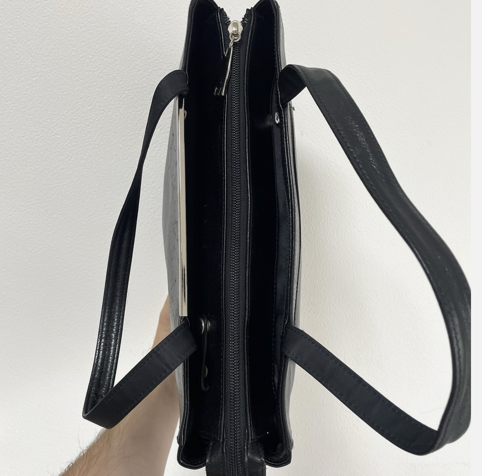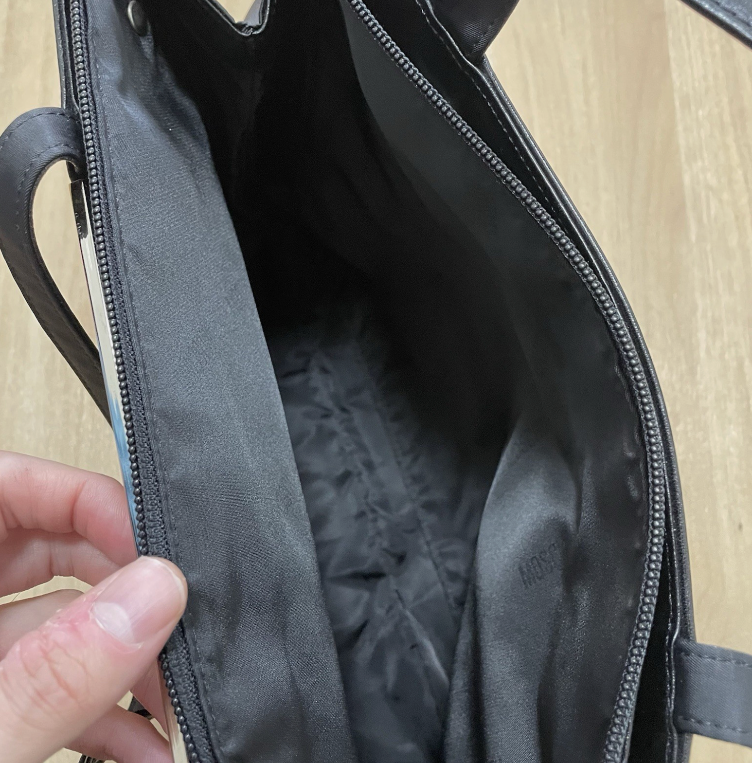 Genuine Moschino black handbag briefcase style business or casual bag.