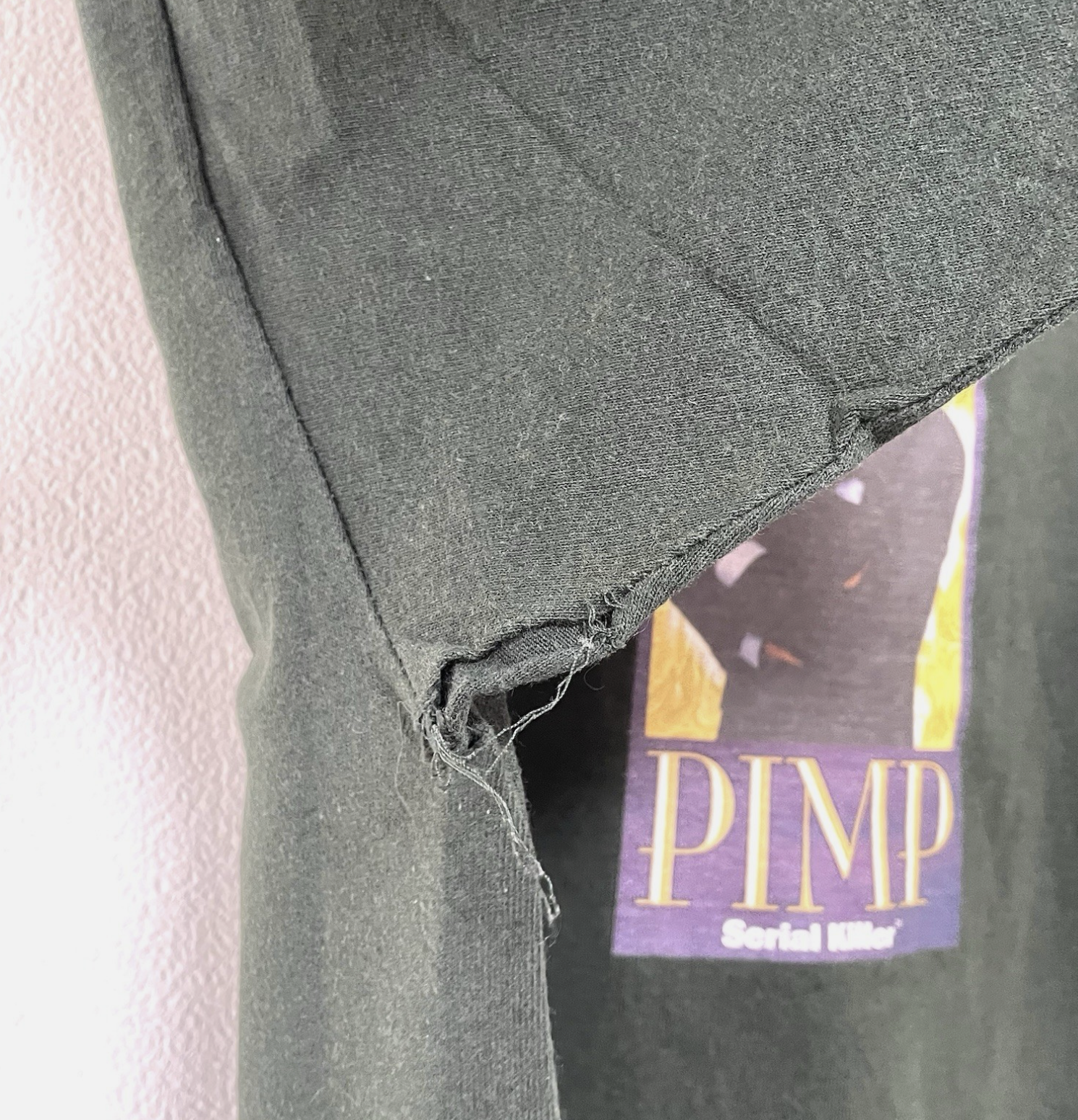 アメリカ製の高品質オリジナルTシャツ。「ザ・プライス・イズ・ライト」のボブ・パーカーをフィーチャーしたシリアルキラーTシャツです。年代の割には良好な中古品です。脇の下に擦れが見られます。穴は未修理ですが、手縫いで簡単に補修できます。掲載画像をご確認ください。