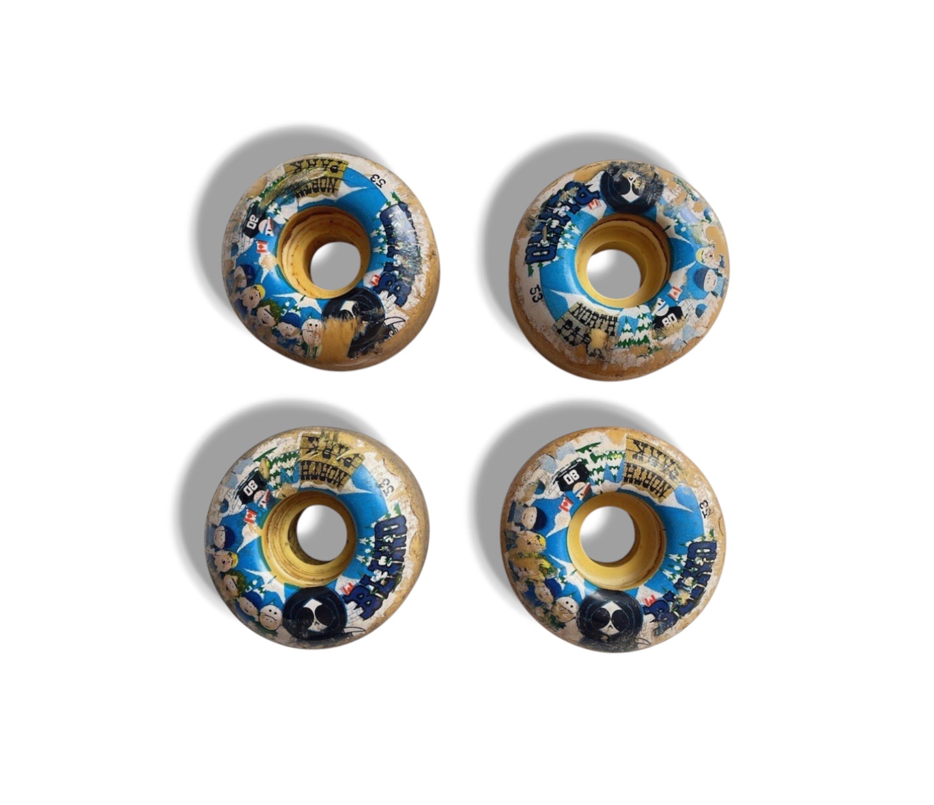 Rare set of used 4x 2006 Blind Reaper North Park South Park 53mm Skateboard Wheels - Purchased in Tokyo Japan